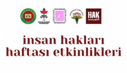 10-17 Aralık İnsan Hakları Haftası, insan hakları odaklı çalışan STK ve meslek odaları tarafından çeşitli etkinlikle kutlanacak. 10-17 Aralık İnsan Hakları Haftası, İnsan Hakları Derneği Diyarbakır Şubesi, Türkiye İnsan Hakları Vakfı Diyarbakır Temsilciliği, Diyarbakır Barosu, Diyarbakır Tabip Odası ve HAK İnisiyatifi tarafından çeşitli etkinliklerle kutlanacak. Hafta programı şöyle: 10…
