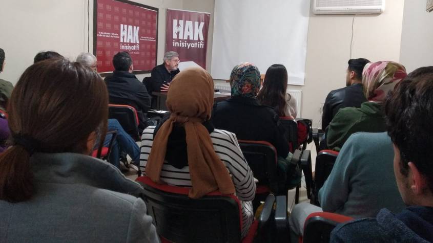 Diyarbakır İnsan Hakları Okulunun 3. haftasının ikinci dersini Prof. Dr. Cihangir İslam verdi. İslam “Din, Devlet, Adalet” başlıklı sunumunda laiklik uygulamaları, demokrasi, biat kültürü ve yönetim konularına değindi.